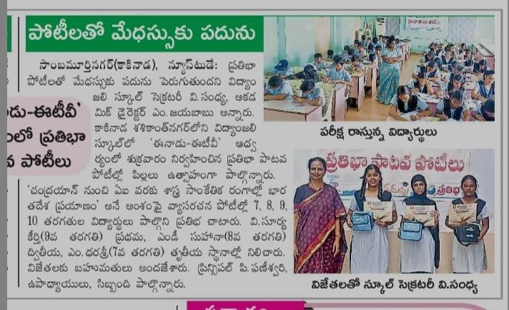 We are delighted to announce that our students have brought laurels to the school by winning prizes in various competitions conducted by EENADU NEWS PAPER
